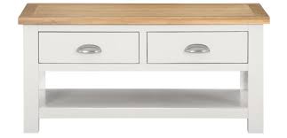 Hampshire oak coffee table £215.96 £269.95. This coffee table is made from solid and engineered wood, and combines an antiqued white hue with a distressed brown tabletop for added charm. Usually dispatched within 2 to 3 days. Homecho industrial coffee table 43, wood and metal cocktail table with storage shelf and 2 drawers for living room, rustic brown. Roseland oak coffee table £209.95.