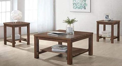 The circular tabletops are made from smoked glass that help to add to the open silhouette. Product titlehousehold essentials havana 2 piece coffee table set. Steve silver matinee coffee table set. King's brand 3 piece wood x style casual coffee table & 2 end tables occasional set, cherry finish. A coffee table with storage can help reduce clutter by adding extra space for remotes, throw pillows, magazines, and toys.