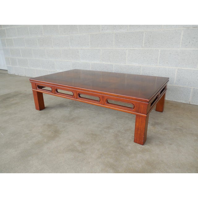 Beautiful midcentury coffee table by heritage henredon with ornate asian design.